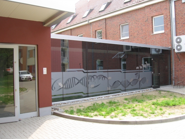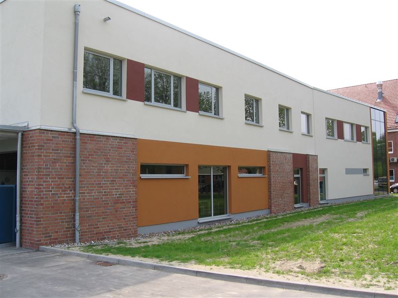 Neubau Modelltierlaboratorium Fassade / Gestaltung Der Verbinder zwischen Modelltierlaboratorium und dem Bestandsgebäude Molekularbiologie wird auf der Westseite als Ganzglasfassade ausgeführt. Er wirkt dadurch transparent und schafft eine optische Trennung zwischen Bestand und Neubau. Im Eingangsbereich ist der Verbinder zum Windfang incl. Vordach erweitert. Der Haupteingang befindet sichauf der Westseite des Windfangs. Die Verbinder-Ostseite erhält eine farbige, gedämmte Putzfassade.Die Nordseite des Modelltierlaboratorium wird in Erdgeschosshöhe komplett verklinkert.Hier erfolgt die Be- und Entsorgung sowie liegen die Zugänge zu Haustechnikräumen. Eine Klinkerfassade ist für diese Bereiche widerstandsfähiger gegen Beschädigungen. Alle übrigen Fassadenflächen erhalten eine gedämmte Putzfassade in abgestimmten Farbtönen. Die Gesamtgestaltung des Gebäudes soll sich in den vorhandenen Gebäudebestand des Institutes eingliedern, gleichzeitig aber auch die moderne Funktion des Hauses verdeutlichen. |