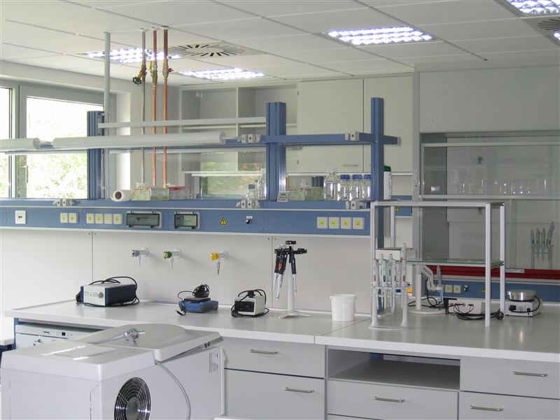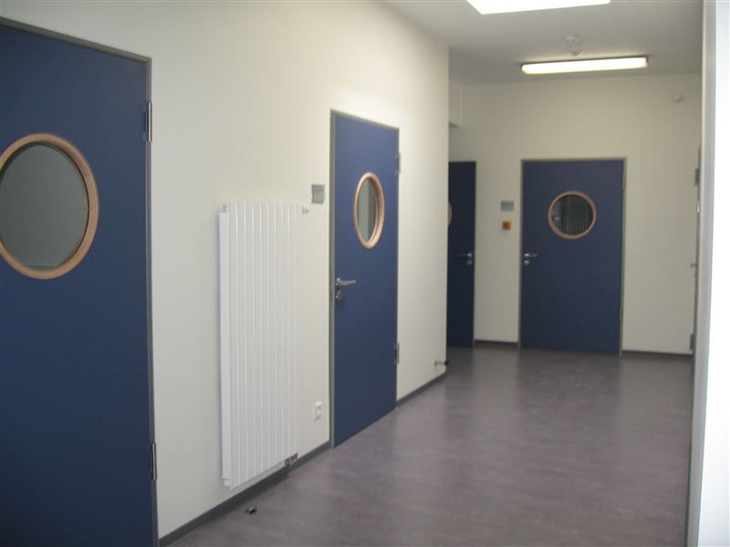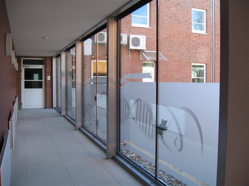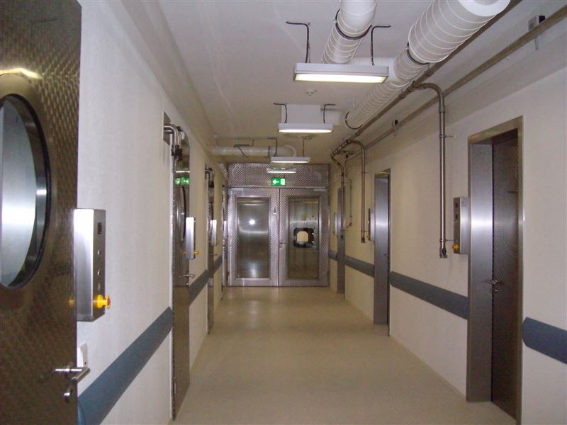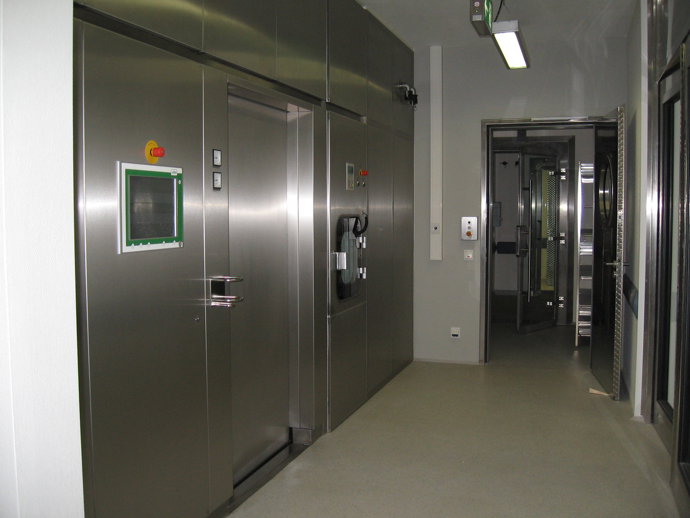 Neubau Modelltierlaboratorium Fassade / Gestaltung Für den Neubau ist ein Flachdach mit Außenentwässerung geplant. Damit wird für das zweigeschossige Gebäude die Kubatur minimiert. Durch die funktionell bedingte große Gebäudebreite ist ein Steildach nicht vertretbar. Das Gebäude mit seinen Funktionsflügeln „Tierhaltung“ und „Labor/Büro“ orientiertsich am Verlauf der Grundstücksgrenze und der vorhandenen Bebauung. Daraus ergibt sich eine Abwinklung um 7°. Der Tierhaltungskomplex mit dem fensterlosen SPF-Bereich, den Haustechnikräumen im Erdgeschoss und der Lüfterzentrale im Obergeschoss erhält eine weitgehend komplett geschlossene Fassade. Der Labor-und Büroflügel wird als Lochfassade ausgebildet. Lediglich das Treppenhaus erhält eine großzügige Glasfassade, die gleichzeitig als markante Gebäudeeck ein der Sichtachse vom Parkplatz und dem Verwaltungsgebäude wirkt. Alle Büro-und Laborräume erhalten Fenster mit einem großen Öffnungsflügel und je nach Raumgröße mit ein oder zwei feststehenden Seitenteilen. |